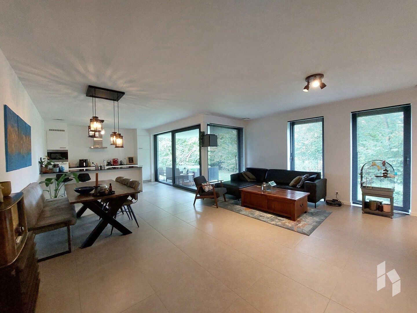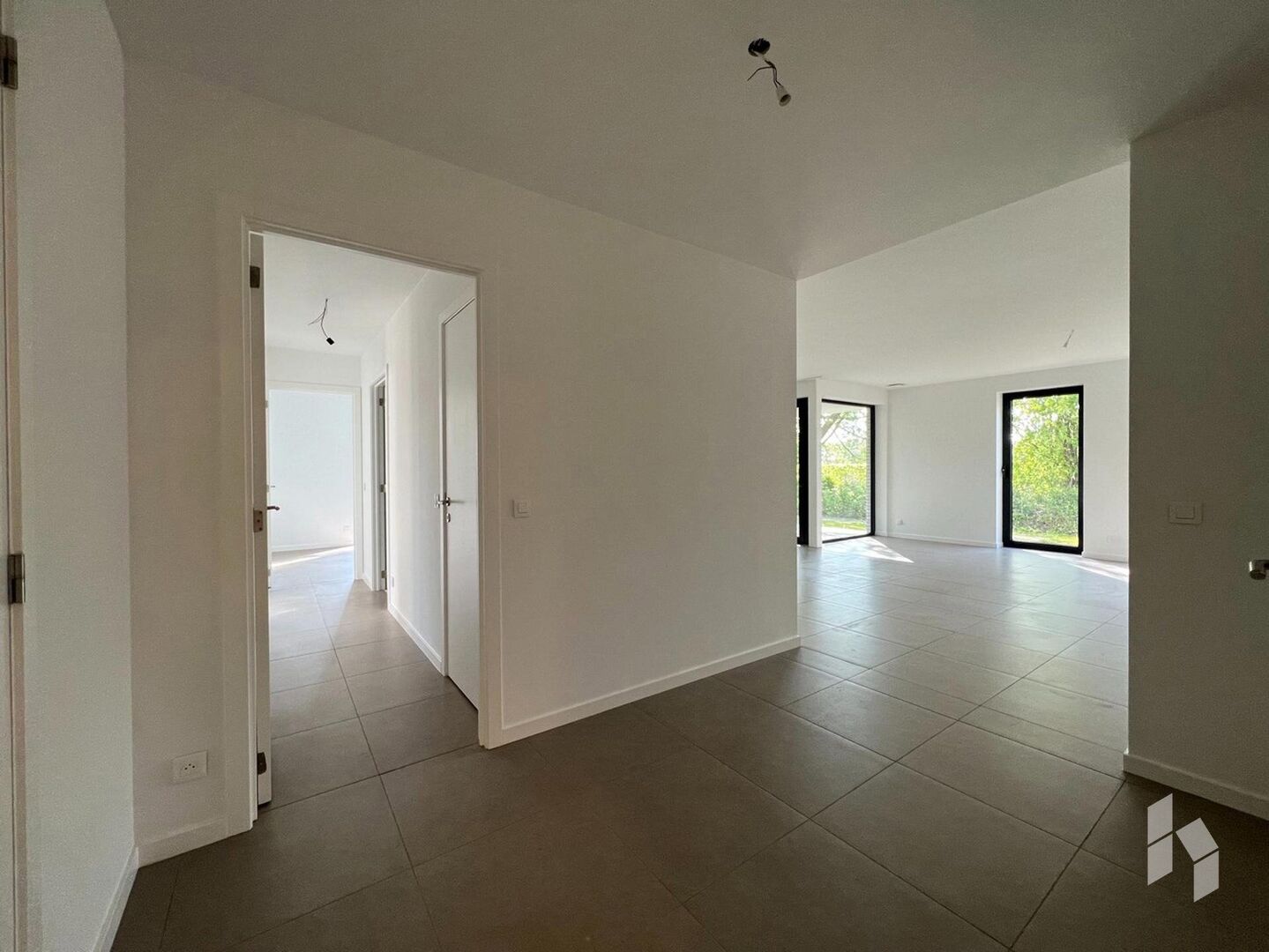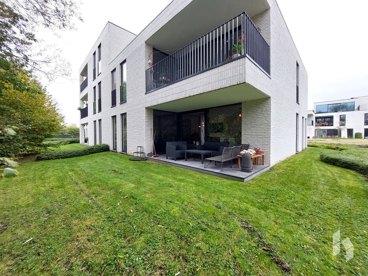 Stijlvol gelijkvloers appartement (123 m²) met 3 slaapkamers, overdekt terras (10,4 m²) en mooi aangelegde tuin (130,9 m²).