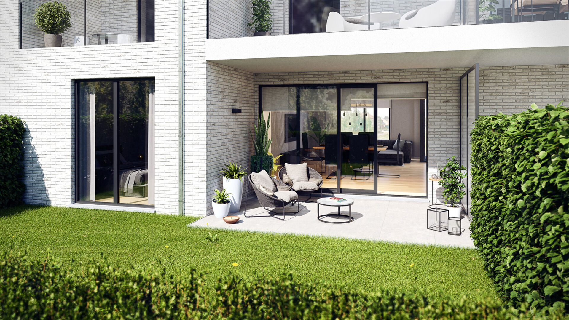 Gelijkvloers nieuwbouwappartement (90 m²) met 2 slaapkamers, 2 terrassen en een tuin van 46,60 m².