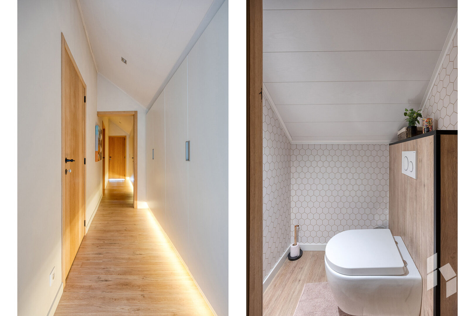 Verdieping: nachthal, toilet, 2 slaapkamers, berging