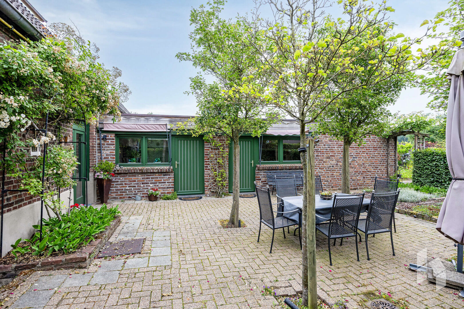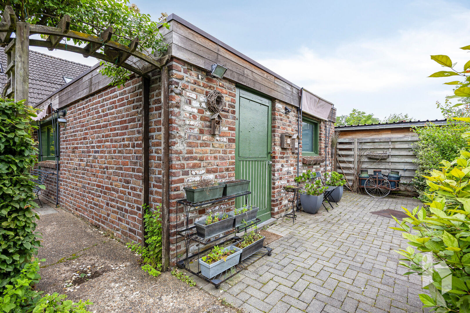 De prachtige groene tuin is omheind en biedt een oase van rust met diverse zithoeken en tal van fruitbomen. Zowel de leefruimte als de keuken grenzen aan het gezellige binnenkoertje. Verder is er nog een ruime tuinberging.