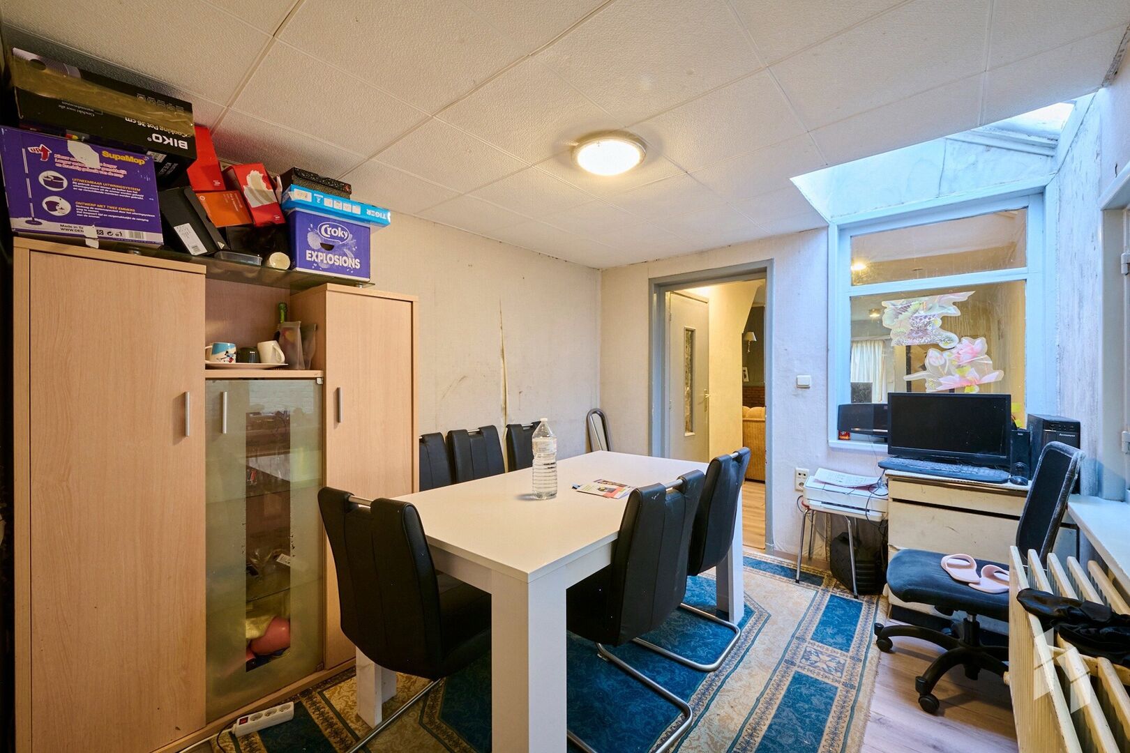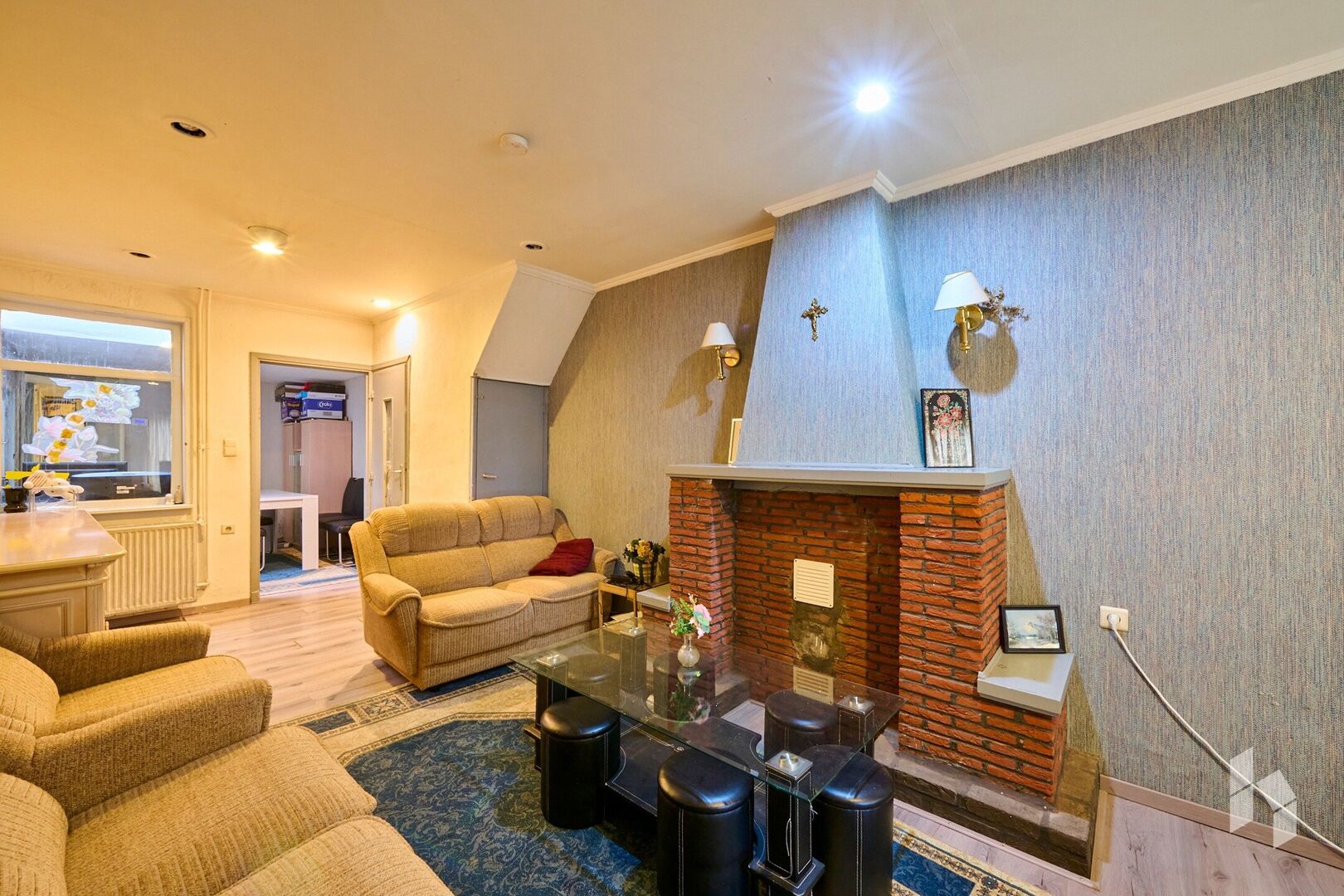 Gelijkvloers: woonkamer, eetkamer, keuken, badkamer, wasplaats, terras