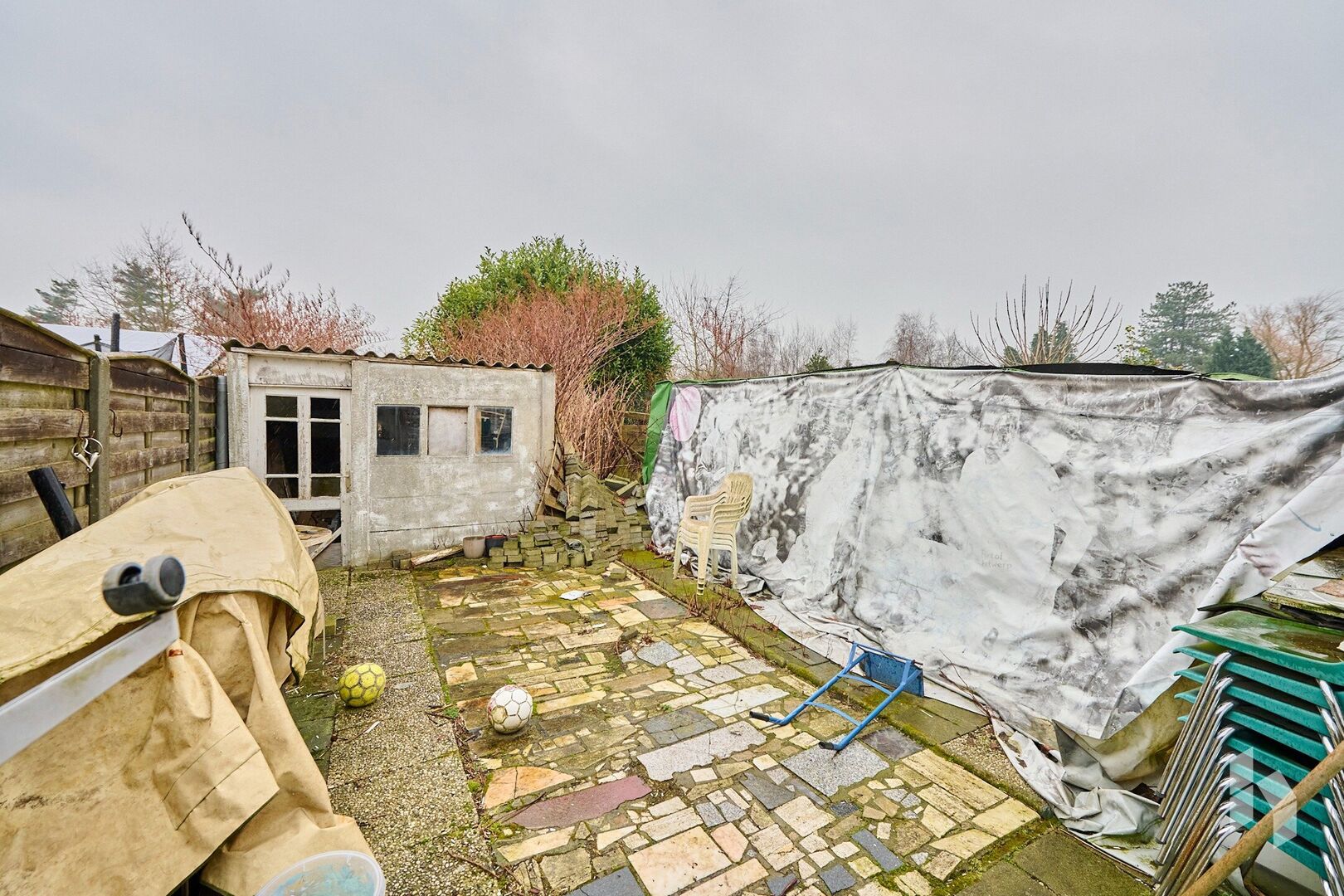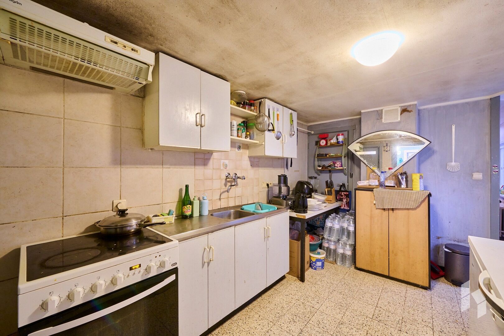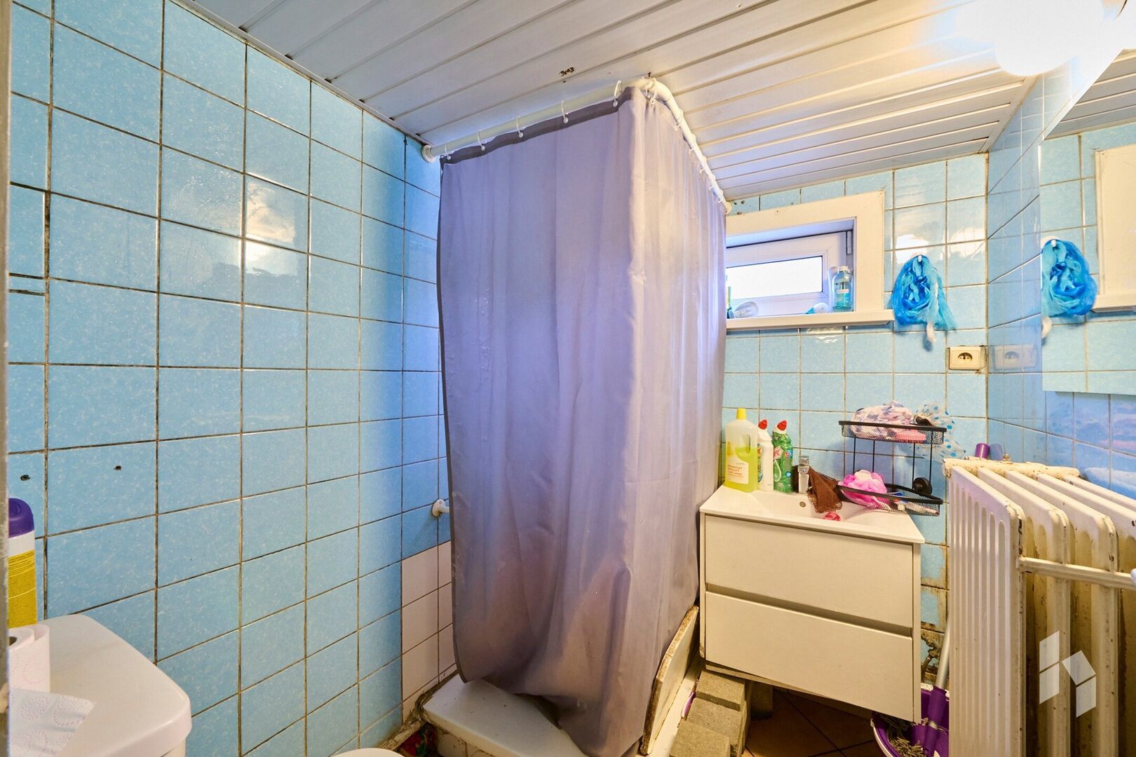 Te renoveren, halfopen woning (90m²) met 2 slaapkamers en een terras op een perceel van 238m² nabij het centrum van Lommel.