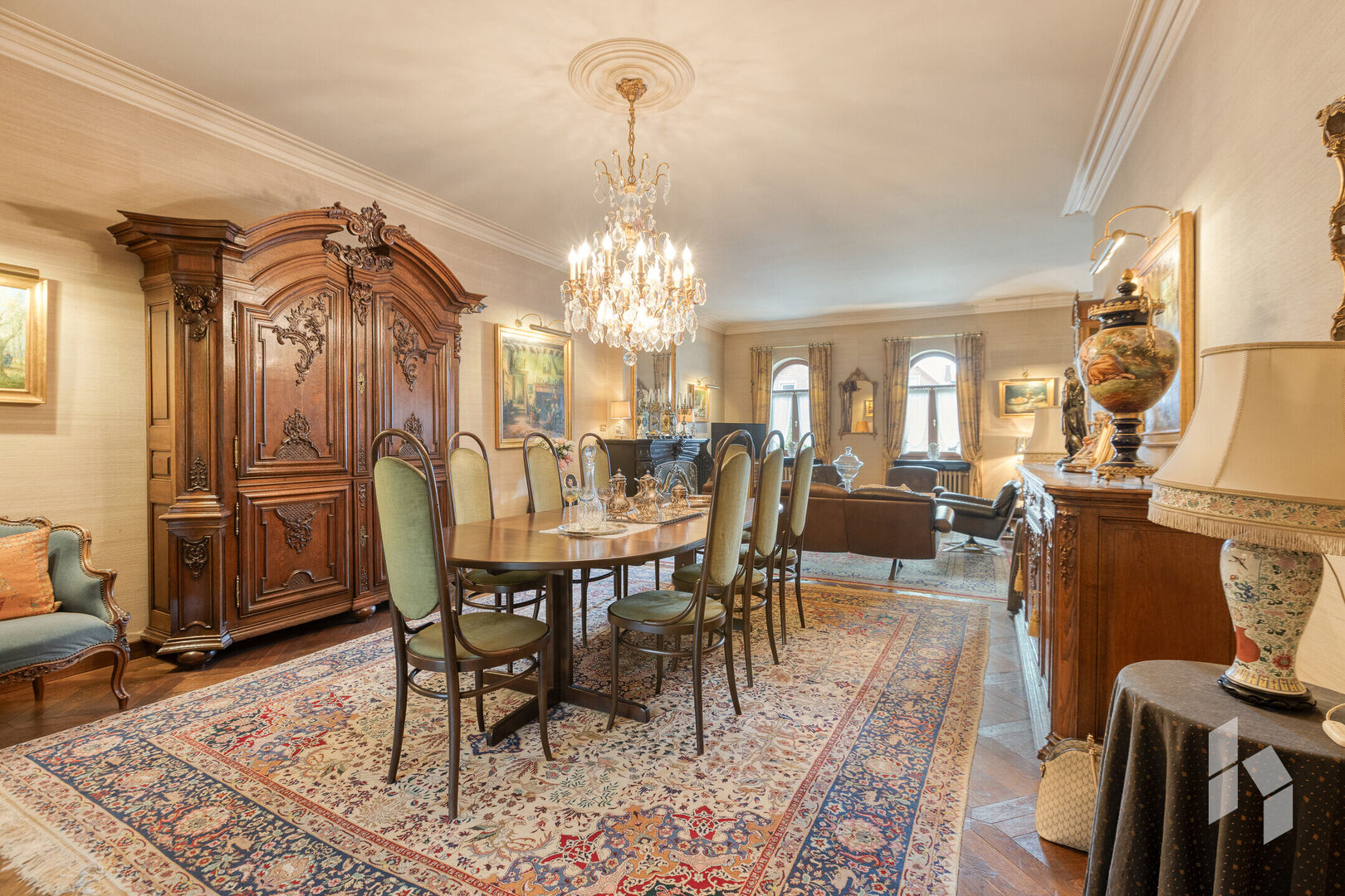Gelijkvloers kom je binnen via een indrukwekkende inkomhal die toegang geeft tot de gezellige woonkamer en verder doorloopt naar de keuken.