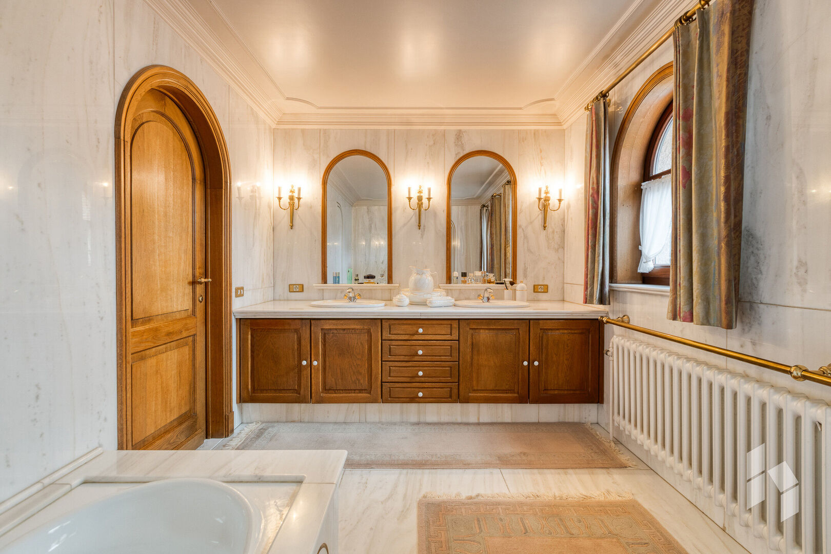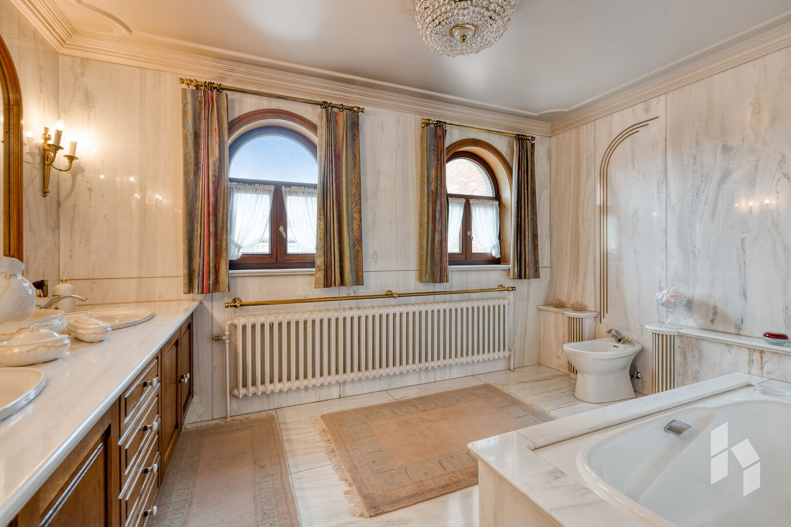 Op de eerste verdieping bevinden er zich 3 slaapkamers, een apart toilet en een badkamer met dubbele lavabo en ligbad.